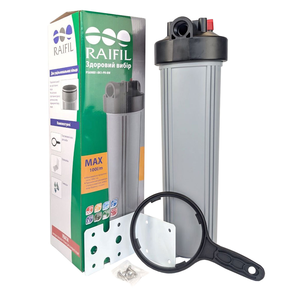 Купите магистральную колбу Raifil BB20 Grey - это надежный корпус магистрального фильтра для дома или квартиры.