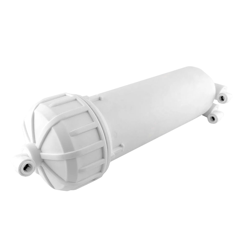 Корпус рассчитан на мембраны типоразмера 3213 и оснащён подключениями 3/8'' на входе и выходе, что позволяет использовать его в системах с повышенным расходом воды. Такая конфигурация часто применяется в производительных бытовых системах обратного осмоса.