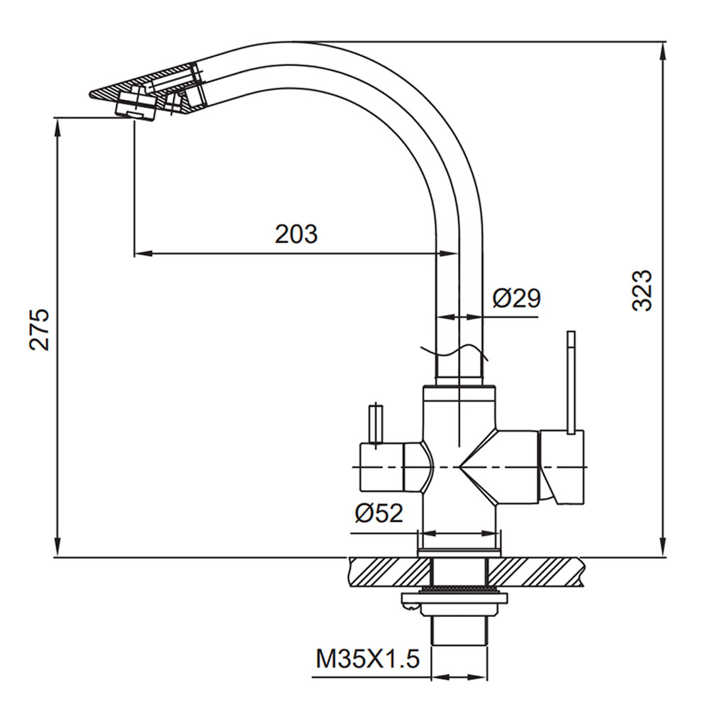 - Отдельный канал подачи питьевой воды — вода не смешивается с водопроводной