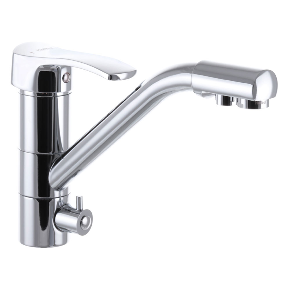 Смеситель для кухни Haiba Focus 021 с выходом для питьевой воды — функциональное решение для тех, кто использует систему фильтрации и хочет сохранить аккуратный внешний вид кухонной зоны без установки дополнительного крана. Трёхпозиционная конструкция объединяет подачу горячей, холодной и очищенной воды в одном компактном корпусе.