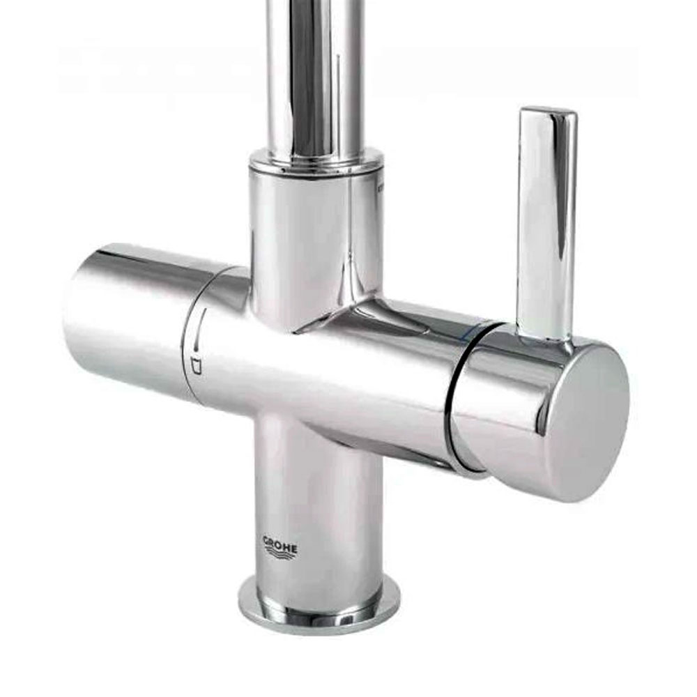 Смеситель GROHE Blue Pure с выходом для питьевой воды — функциональное решение для кухни, где ценят чистоту пространства и удобство в ежедневном использовании. Модель объединяет классический кухонный смеситель и подачу фильтрованной воды в одном корпусе, позволяя отказаться от установки отдельного питьевого крана.