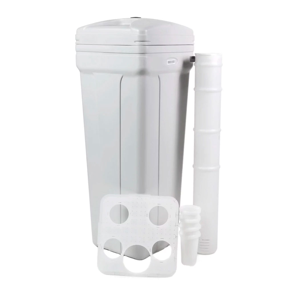 Этот солевой бак вмещает в себя до 70 литров таблетированной соли или готового солевого раствора. Его конструкция включает пластиковый корпус с удобной крышкой, инновационную солевую решетку, а также солевую шахту с поплавковой системой. В комплекте предусмотрена трубка для легкого соединения с управляющим клапаном.