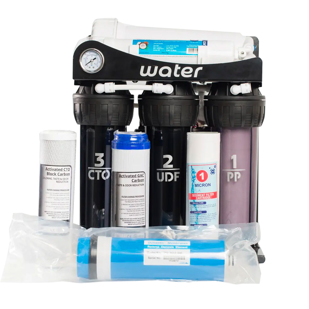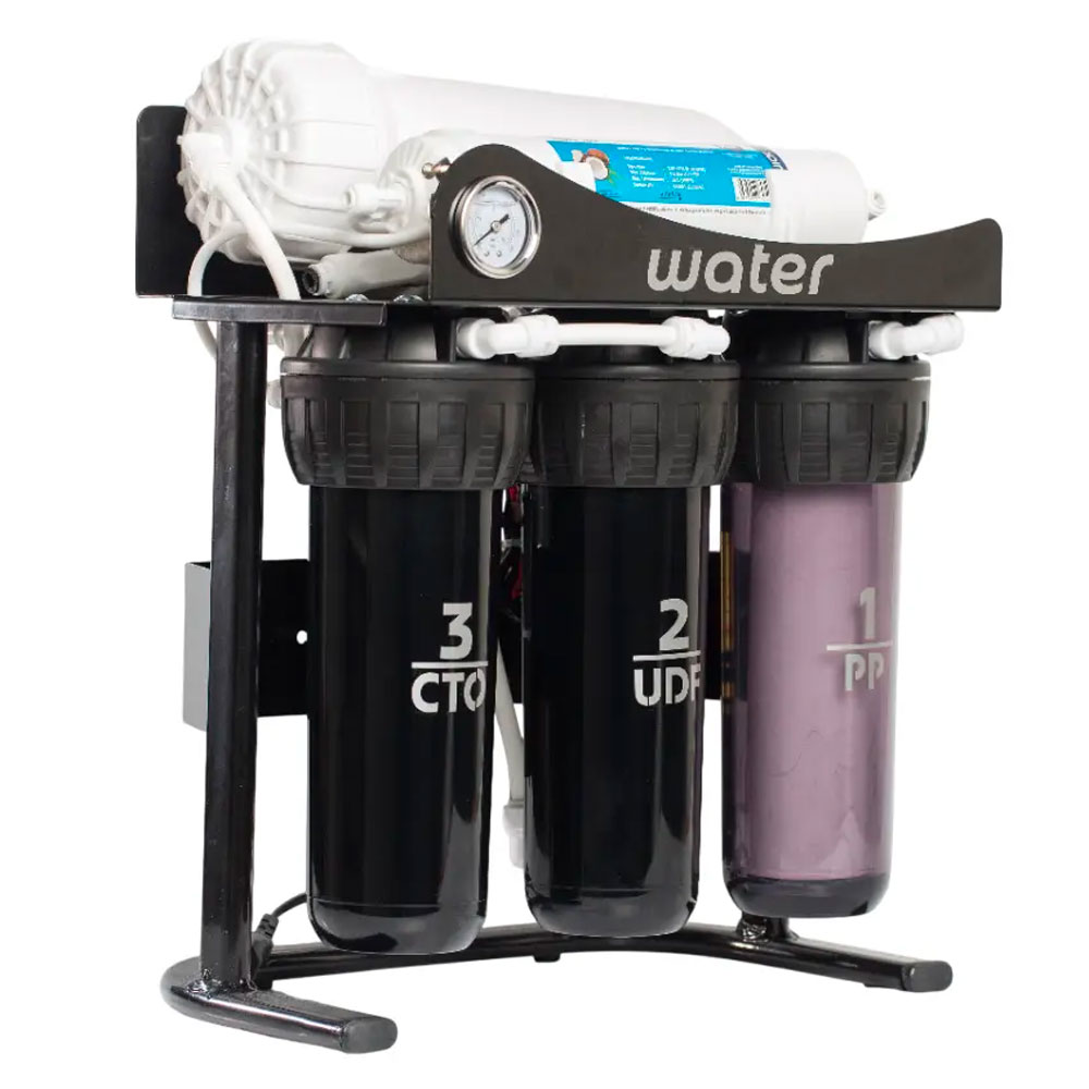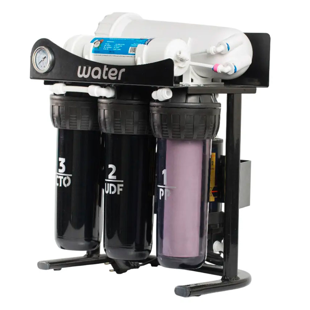 Фильтр оснащён современным насосом, который обеспечивает стабильную работу даже при низком давлении в водопроводе. Вода, прошедшая через мембрану с производительностью 500 GPD, полностью очищается от вредных примесей, солей жёсткости, тяжёлых металлов, бактерий и вирусов, что делает её безопасной для питья и приготовления пищи.