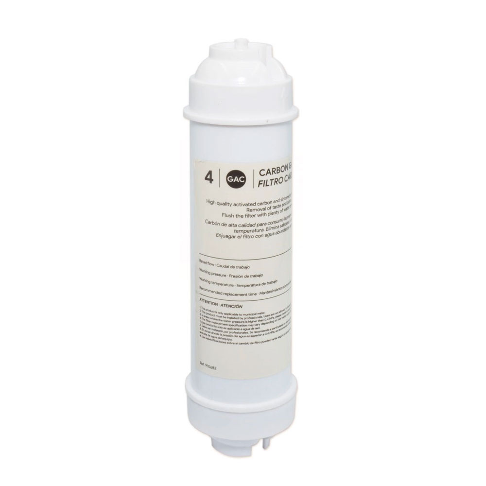 Постфільтр виготовлений із гранульованого вугілля, яке ефективно доочищує воду від залишкових домішок. Він знижує вміст хлору та органічних сполук, усуває каламутність, сторонній присмак і неприємний запах. Завдяки цьому вода підходить для пиття в чистому вигляді, приготування їжі та напоїв.